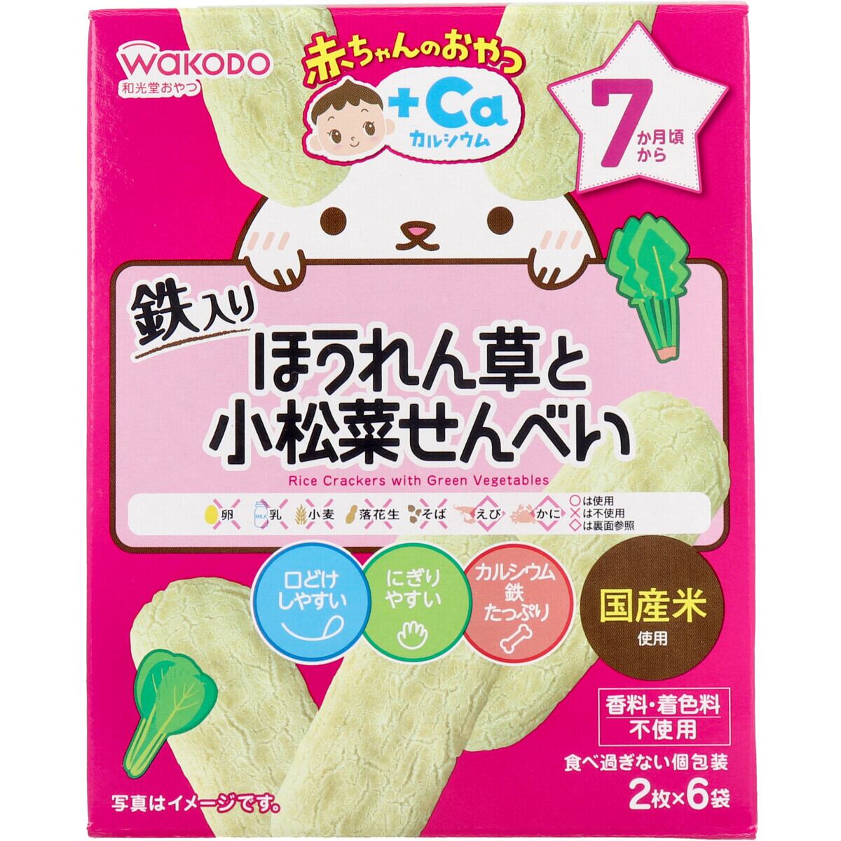 和光堂 赤ちゃんのおやつ+Ca ほうれん草と小松菜せんべい 2枚×6袋/4987244183484(特送)