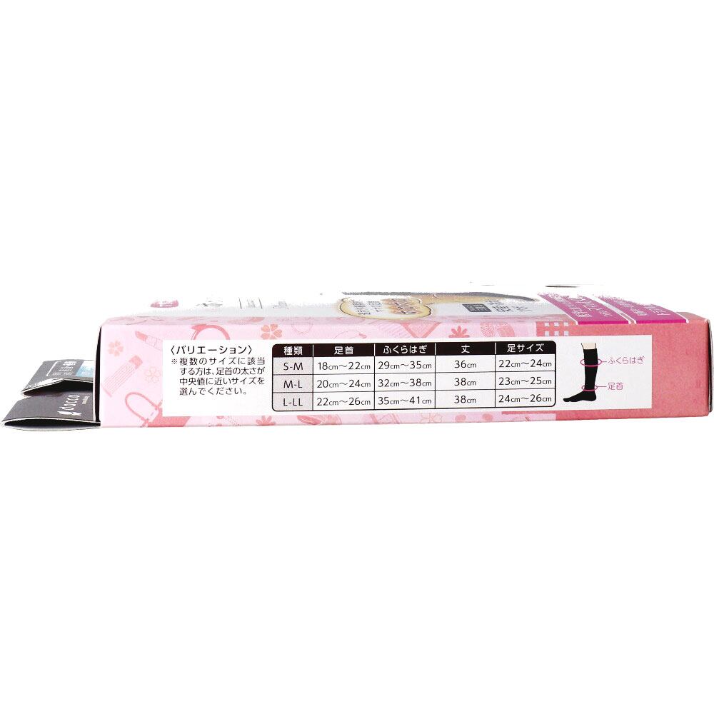 【限定セール開催中】→ https://mukimei.kannonsama.com 遠赤外線素材を足首に使用しているため、レッグウォーマーをはいているようにポカポカ暖めます。●起床時に最適なつま先ありの昼用と、就寝時に最適なつま先カットの弱圧タイプ夜用があります。●足首を暖め、段階着圧でむくみを軽減するマタニティ着圧ソックスです。●湿気コントロール素材を使用しているため、ムレにくく1年中快適に着用できます。●むくみの原因や冷えによるトラブル、正しいはき方などを記載したQ&A付きです。●天然ゴムを使用していないため、ラテックスアレルギーが心配な方も使用できます。【一般医療機器】届出番号:23B2X10001000078一般的名称:弾性ストッキング【効能又は効果】下肢の静脈血・リンパ液の循環促進、むくみ軽減【素材】ナイロン:85%ポリウレタン:15%※天然ゴム不使用(天然ゴムラテックス由来のたんぱく質を含みません。)【サイズ】★S-M足首:18cm〜22cmふくらはぎ:29cm〜35cm丈:36cm足サイズ:22〜24cm★M-L足首:20cm〜24cmふくらはぎ:32cm〜38cm丈:38cm足サイズ:23〜25cm★L-LL足首:22cm〜26cmふくらはぎ:35cm〜41cm丈:38cm足サイズ:24〜26cm【注意】・高温・多湿や直射日光のあたる場所を避け、乳幼児の手の届かない所に保管してください。・使用期限は、未開封の状態で保存した場合に品質が保たれる期限です。・着用前に同封の添付文書及び説明書(Q&A)を必ず読んでください。・サイズ表に沿って、適正なサイズを着用してください。・爪や指先の荒れ、指輪等で本品を傷つけないように注意してください。・洗濯ネットを使用してください。・中性洗剤を使用してください。・濃色の製品は色落ちする恐れがあるため、他の物と分けて洗濯してください。・長時間の浸漬や濡れた状態での放置は避けてください。